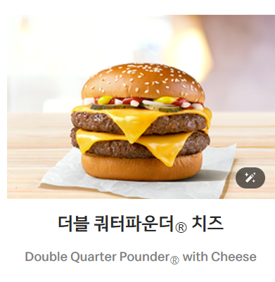 - 구성: 두 장의 1/4파운드 쇠고기 패티, 치즈 2장, 양파, 피클, 케첩, 머스터드