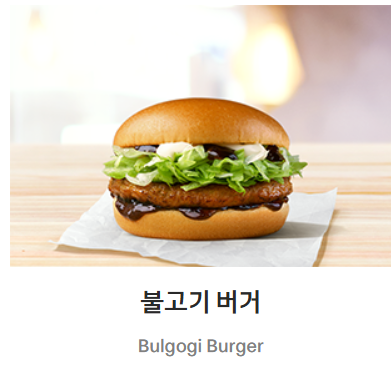 - 구성:쇠고기 패티, 불고기 소스, 양상추, 마요네즈